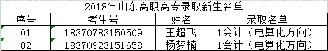 2018年山东高职高专录取新生名单