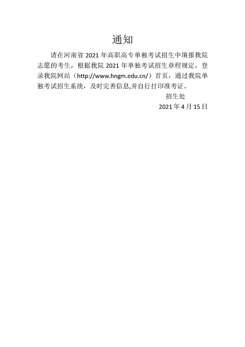 河南工业贸易职业学院关于打印2021年单独考试招生考试准考证的紧急通知