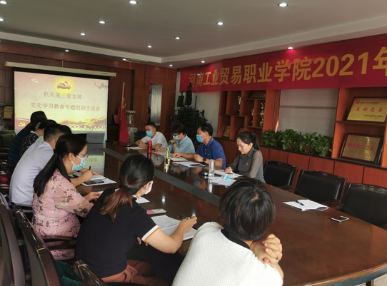 在机关第一党支部专题组织生活上,刘合行认真听取每位党员发言,并同大家分享党史教育学习心得,结合个人思想和工作实际,深入查摆存在问题,剖析问题根源,提出整改措施。刘合行说,学习贯彻“七一”重要讲话精神是我们当前和今后一个时期一项重大政治任务,我们要进一步深化学习习近平总书记在庆祝中国共产党成立100周年大会上的重要讲话精神,切实把学习成果转化为奋进新征程、建功新时代的实际行动,不断砥砺为党育人、为国育才、立德树人的初心使命,持续强化推进“双高校”建设、打赢“翻身仗”战役、实现跨越式发展、做好新时代职教的责任担当。