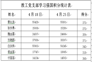 图八:粮食工程学院党总支各支部每周进行“学习强国”积分统计
