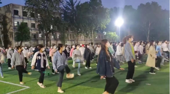 5月5日至5月7日晚六点半至七点半,信息工程学院2021级全体学生在体育场集体表演《本草纲目》广场舞。