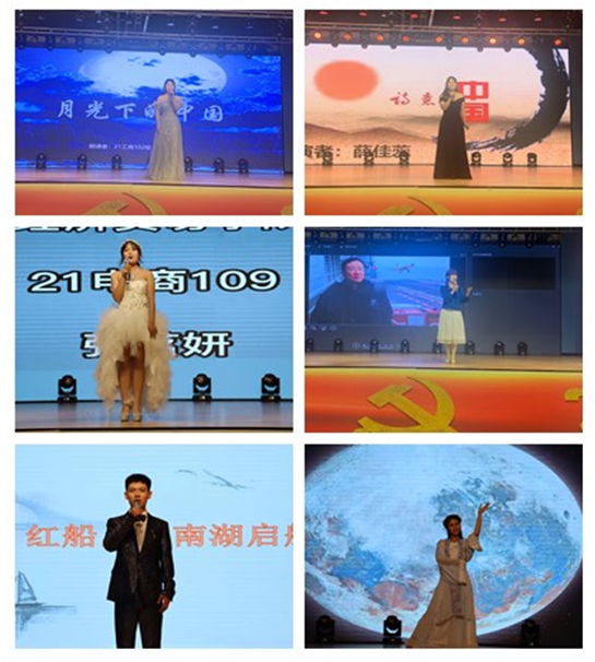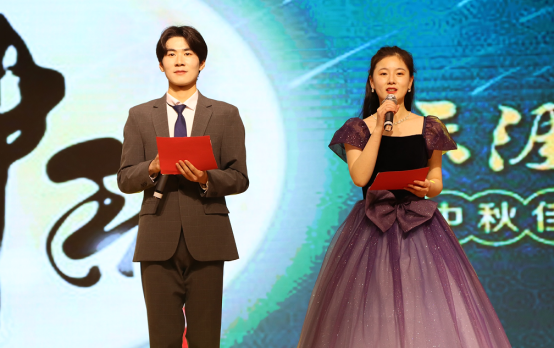 第四环节来自艺术设计学院马小婷和工商管理学院郭佳奇一起模拟主持的迎中秋晚会给线上观众们带来身临其境的效果。