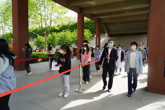 王淑慧一行先后来到我校疫苗接种现场的等侯区、登记区、接种区、留观区、后勤保障区等场所,详细了解疫苗管理、接种师生人数、医务人员配备及校园疫情防控措施落实等情况,对我校积极配合、有序推进疫苗接种及前期疫情防控工作取得的成效给予充分肯定。
