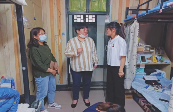 在整个慰问过程中,老师们一直不厌其烦的一遍遍向学生们宣传学校的疫情防控政策,提醒同学们要加强自我防护,戴好口罩、保持一米社交距离,保持宿舍卫生清洁,勤洗手、勤通风、接到快递反复消毒。