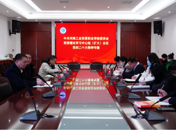 2月22日,河南工业贸易职业学院召开党委理论学习中心组(扩大)会议,专题学习党的二十大精神,进一步安排部署相关学习宣传贯彻工作。校党委书记刘合行,党委委员、副校长李振伟、刘卫红、王铬出席会议,各单位党政负责人参加会议。刘合行主持会议并讲话。