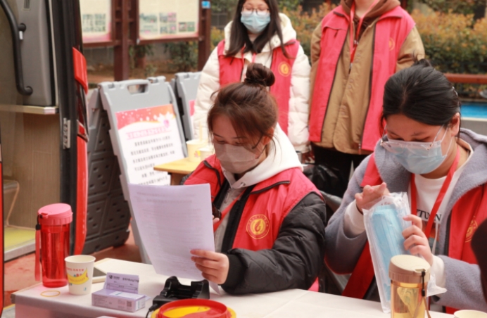 活动开始后,前来献血的师生络绎不绝,他们排起长队耐心等候,志愿者认真地询问献血者的身体状况、近期用药情况、作息情况,有序进行填表、体检、验血,工贸学子们用滚烫的鲜血汇聚成生生不息的爱心长河。
