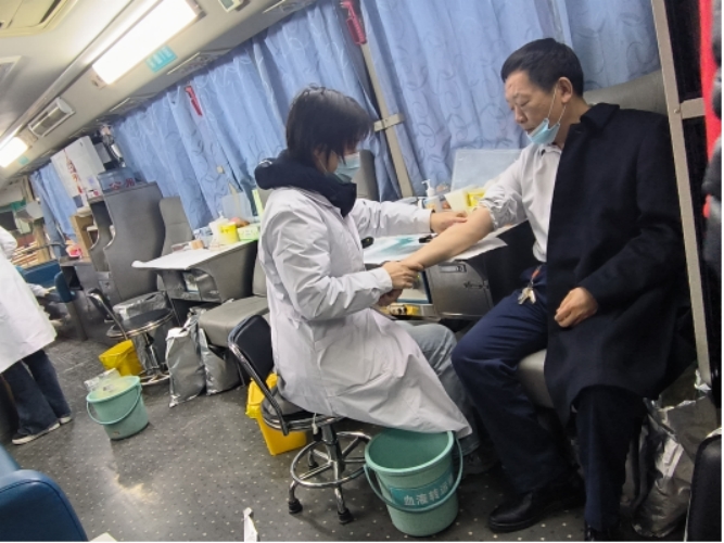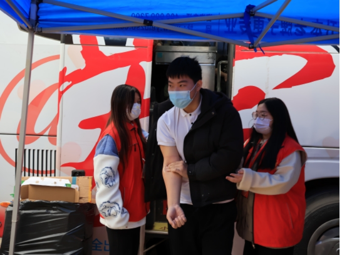 献血过程中,广大师生为爱挽起衣袖,勇敢伸出手臂,当鲜红的血液顺着采血管流淌出来的时候,真诚与奉献之心溢于言表。