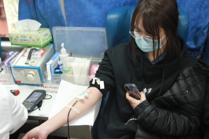 献血是一件光荣的事情,也是我校经常举行的爱心活动,虽然献血后有轻微的虚弱,但我想到这一袋血能够挽救一条垂危的生命,就觉得很值得。—— 22级同学 李金路