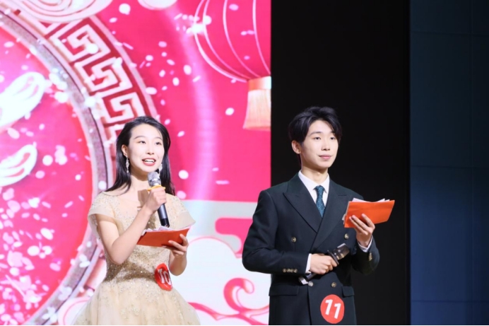 在模拟环节中,选手们两两搭配进行主持,他们配合默契,奇思妙想层出不穷,为现场观众呈现了一场主持盛宴。其中来自艺术设计学院22室内110班王宇鑫和经济贸易学院22网销107班刘璐瑶搭档模拟主持的春节晚会给观众们带来身临其境的效果。