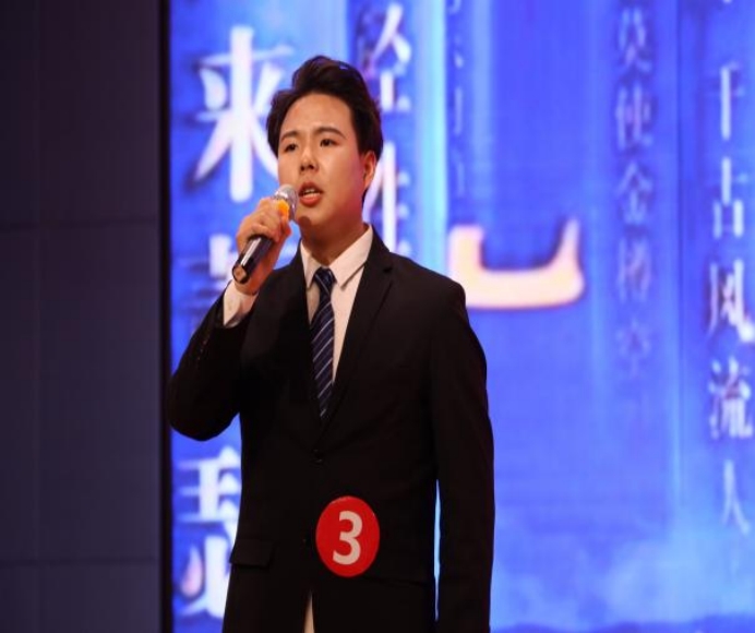在自备稿件环节中,选手们逻辑清晰、镇定自若,充分展现出他们扎实的主持功底和临场应变能力。其中来自工商管理学院22融媒102班的选手陈欣朗诵的《1978的早冬》,表达了一批批共产党员无私的爱国情怀、引发了大家强烈的情感共鸣。