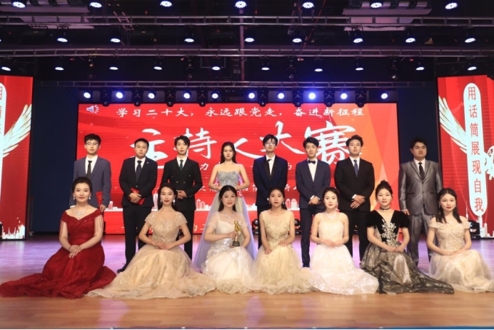 为深入学习宣传贯彻党的二十大精神,展现当代大学生积极向上的精神风貌,加强校园精神文化建设,为爱好主持的同学提供一个展示自我的舞台。3月23日下午,由校团委主办的第十六届“金话筒”校园主持人大赛在学术报告厅隆重举行。校团委书记张现振、副书记张薇、宣传统战部统战科长孙金华、图书馆老师王珊及各二级学院团总支书记受邀担任评委,校级学生组织代表、各二级学院学生代表、各选手班级助威团参加了现场活动。本次活动采用“线上线下”相结合的方式,使比赛效果更加完美的呈现。